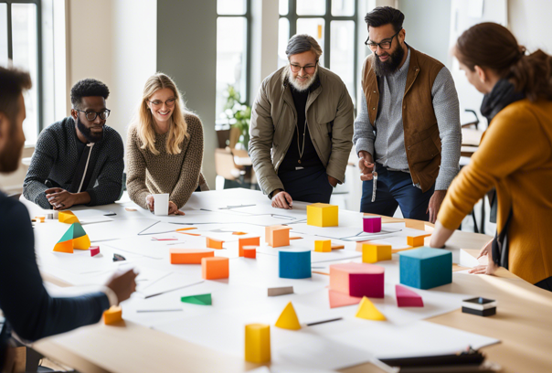 - Interdiziplinäre Teamarbeit: Die Stärke von Design Thinking liegt in der Zusammenarbeit. Teams aus unterschiedlichen Disziplinen bringen vielfältige Perspektiven ein, was die Entwicklung ganzheitlicher und innovativer Lösungen begünstigt.