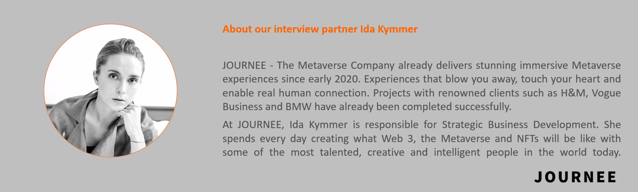 Since the metaverse is at an early stage in its development, Ida states that there is currently no “place to be”. If companies want to get into the metaverse, they should focus on what is best for their customers and experiment with this knowledge, rather than rushing into the transformation without knowing about the added value for their customers.